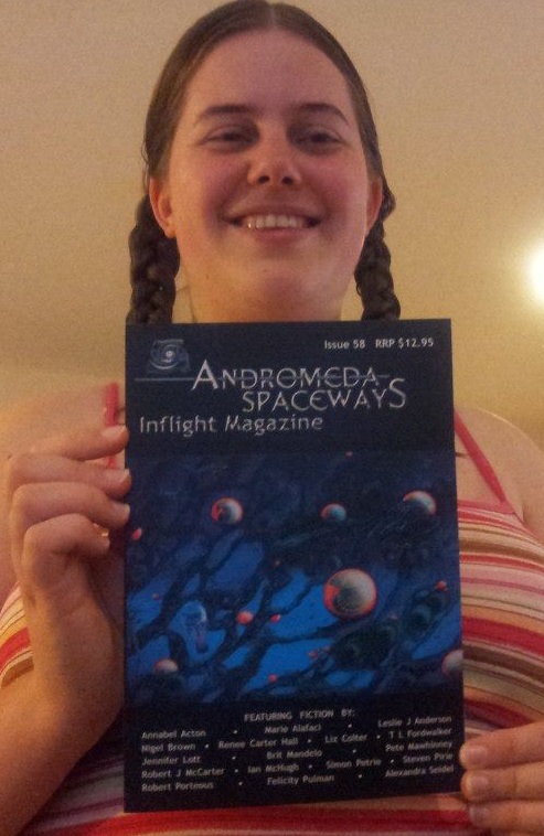 At last, I have my contributer copy of Andromeda Spaceways Inflight Magazine in my hands! Needless to say I am especially fond of Australians at the moment. My egotistical imagination has the whole continent enjoying my one short story; you know, whether or not they read the magazine, or science fiction, or fiction of any kind. Rest of the world: remember it is an internationally accessible magazine with digital options available;-) http://www.andromedaspaceways.com/buy-now/latest-issue-2/
