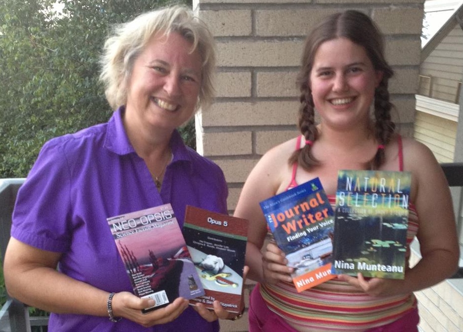 I am privileged to know Nina Munteanu — novelist and writing teacher. In this picture I am holding two of her published works. “Journal Writer: Finding Your Voice” is a guidebook for expressive writers in writing journals, diaries and memoirs. “Natural Selection” is a collection of short stories which explore humanity’s co-evolution with our environment and technology. Find out more about Nina at http://www.ninamunteanu.com/
