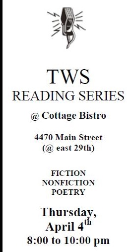 I read a Drescopata scene to an audience of writers and their supporters. My parents and husband came to show their support for me. This was my second reader spot in this monthly event organized by TWS (http://www.sfu.ca/continuing-studies/about/program-units/the-writers-studio-community/reading-series.html). I have yet to witness a writer apart from myself and my mother reading anything based in fantasy or science fiction. The TWS community seems to be made up mostly of poetry and memoir writers. It’s nice to be different and still included. Following four readers of dark poetry, my work felt like a refreshing change. There is something to be said for letting an audience fall into a somber trance before bouncing them off a magical planet in giant soap bubbles…don’t you think?